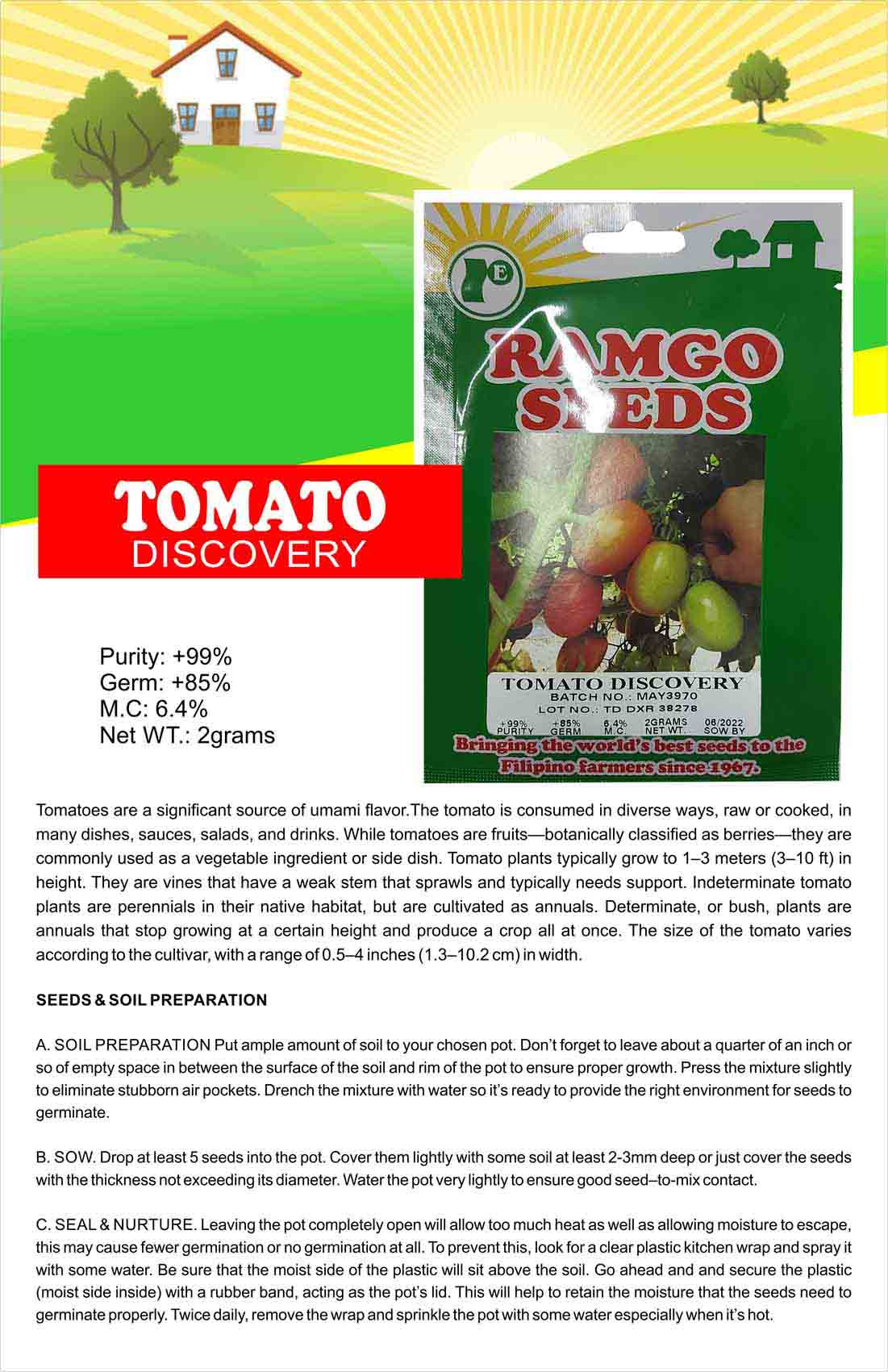 Purity: +99% Germ: +85% M.C: 6.4% Net WT.: 2grams